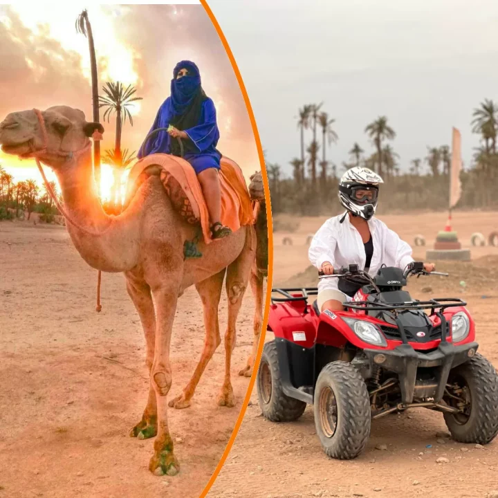 Enjoy a unique experience combining adventure and tradition in the heart of Marrakech's Palmeraie. Explore the vast palm oasis, first feeling the adrenalin of quad biking, then enjoying the tranquility of camel riding. It's the perfect combination for discovering the landscapes of the palm grove and the Berber villages.