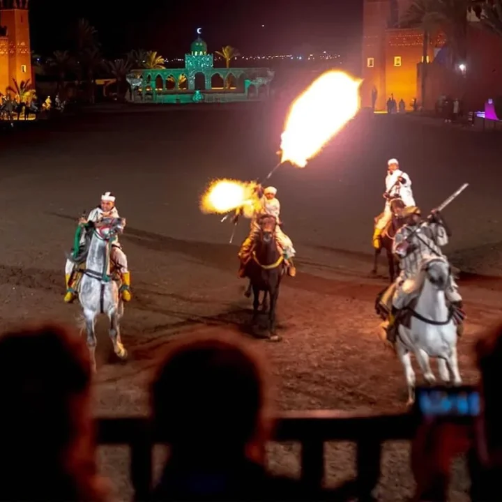 Experience a magical, sumptuous night with the famous Chez Ali dinner and show. It's a complete cultural immersion where Moroccan gastronomy meets a fascinating spectacle of music, dance and acrobatics. In a setting worthy of the Thousand and One Nights, enjoy a typical Moroccan dinner while witnessing folk dances and equestrian displays (Fantasia).